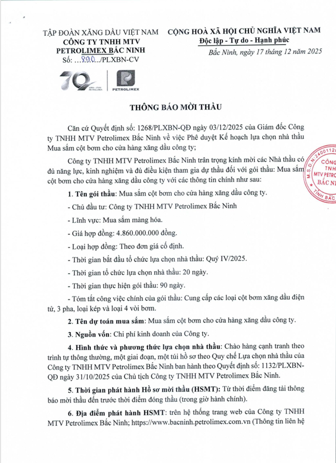 1. Thông báo mời thầu