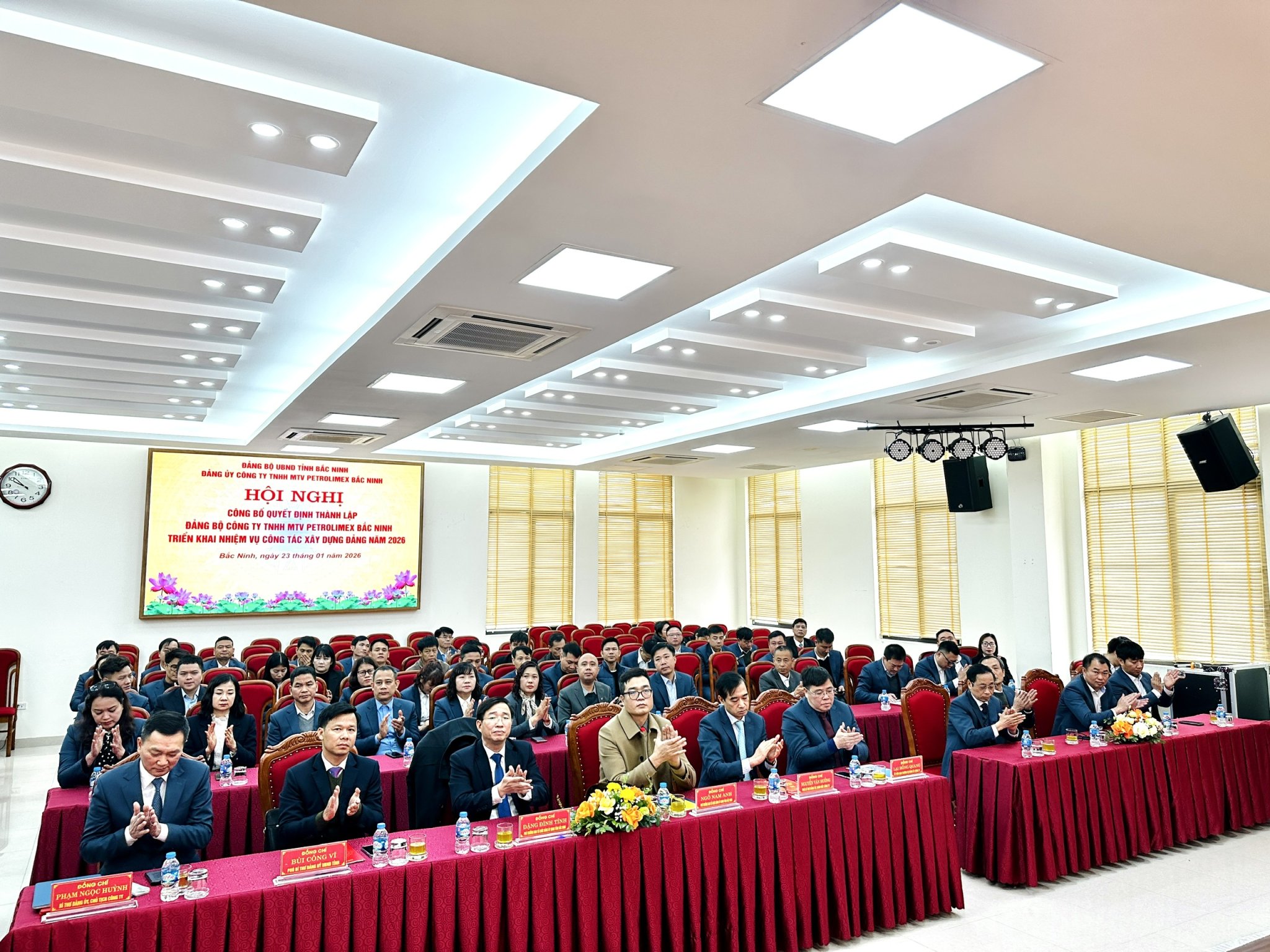Tại Hội nghị, Ban Tổ chức đã công bố các quyết định của Đảng ủy UBND tỉnh về thành lập Đảng bộ Công ty TNHH MTV Petrolimex Bắc Ninh; quyết định chỉ định Ban Chấp hành, Ban Thường vụ, Bí thư, Phó Bí thư và Ủy ban Kiểm tra Đảng ủy Công ty nhiệm kỳ 2025 - 2030. Đồng thời, Hội nghị cũng công bố các quyết định thành lập Đảng bộ bộ phận Chi nhánh Petrolimex Kinh Bắc, các chi bộ trực thuộc và chỉ định cấp ủy theo quy định.